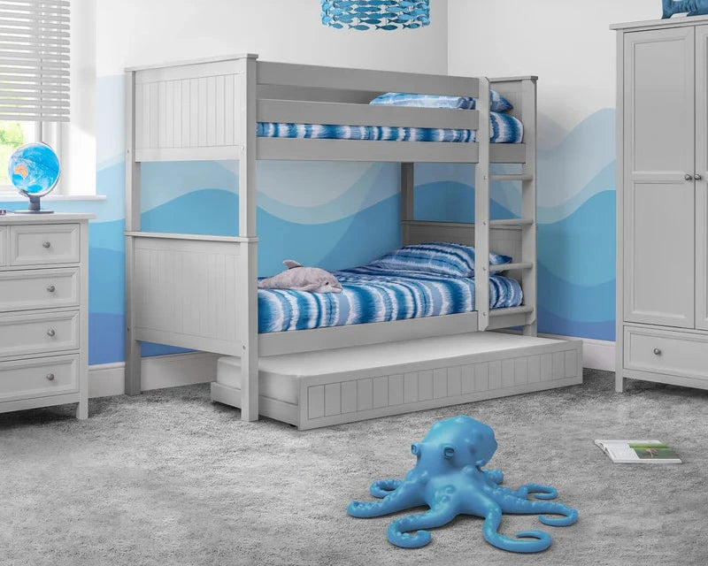 Maximise space with the Julian Bowen Maine Bunk Bed, ideal for both girls and boys bedrooms. This bunk comes in a variety of colours, such as white, grey, and anthracite, appealing to all bedrooms. The panelled footboard and headboard offer a simplistic vibe in the room, for a smart appearance.