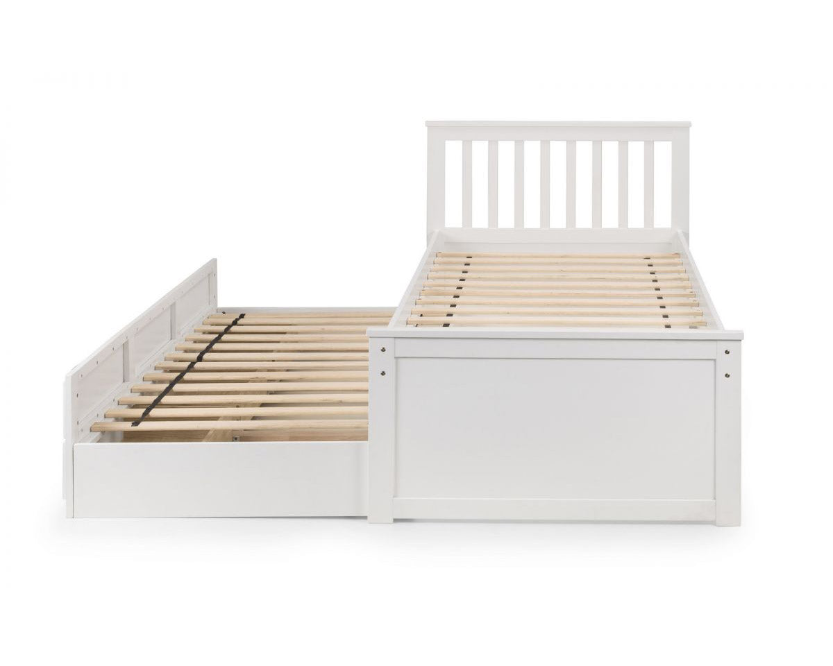 The trundle would need a low kids mattress for a smooth motion back under the bed frame. Finished with a slatted headboard for stylish results, perfect for any kids bedroom. With a solid pine and MDF construction, this bed frame would provide long-lasting benefits in the children 's bedroom or spare.