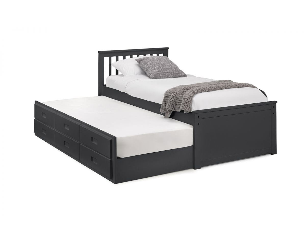 Transform the bedroom with the Julian Bowen Maisie Captains Bed on sale for the best solution. This kids bed with storage and trundle would be a feature in any bedroom. White, grey, and Anthracite are all modern colours impacting the bedroom in a stylish way for contemporary settings.