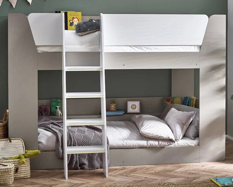 Make the kids bedroom smart with the Julian Bowen Parsec Bunk Bed. With space-saving features, this kids bunk bed features shelving for the best storage advantages. Available in simplistic white or modern white and taupe for stylish results in the children's bedroom.